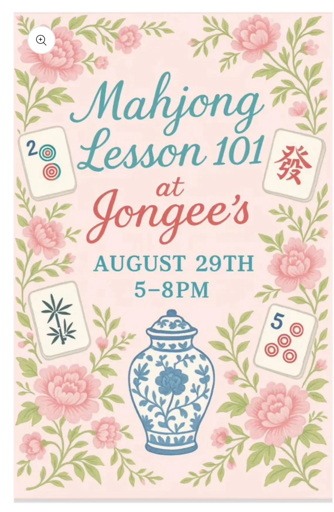 Mahjong 101 is an introductory class to American Mahjong. Master teacher, Laura Johnson (Mama Mahjong), takes you through the Chinese based game, tile by tile, hand by hand. Each player will learn the basic rules and strategies of the game, giving them a solid foundation to play on their own. Each player takes home a Mama Mahjong 101 training card. Tiles, teaching, sips and snacks provided!